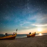 Här finns matplats och utomhusmatplats med köksutrustning, såsom vattenkokare, köksredskap och diskmaskin. Restaurangen GRUBY De Lux, som serverar ett brett utbud av måltider, ligger ungefär 5 minuters promenad bort. Villan ligger 75 km från Gdansk Lech Walesa flygplats.